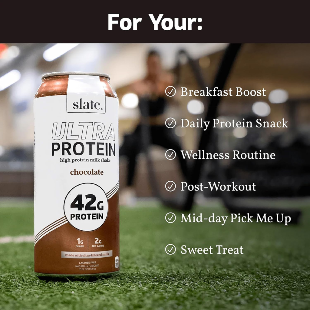 | Slate Milk High Protein | Up to 42g | 0–2g | Strength focus | Moderate–Easy | Very high protein, lactose-free |